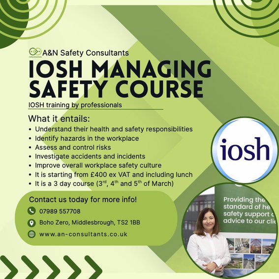 Ensuring workplace safety is more than a legal requirement — it’s essential for protecting your team, improving productivity, and fostering a positive safety culture. A&N Safety Consultants are now offering the IOSH Managing Safety course in Middlesbrough, designed for managers and supervisors across all industries.